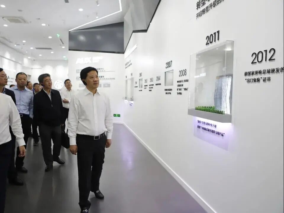 在方太集团,章根明深入产品展览馆,详细了解产品研发成果及标准创新品牌培育历程,对企业两次荣获“中国质量奖”提名奖和积极参与制订国家标准表示赞赏,鼓励企业努力争获“中国质量奖”,全面提升质量管理水平,为浙江省乃至全国的高端厨电领域发展贡献力量。